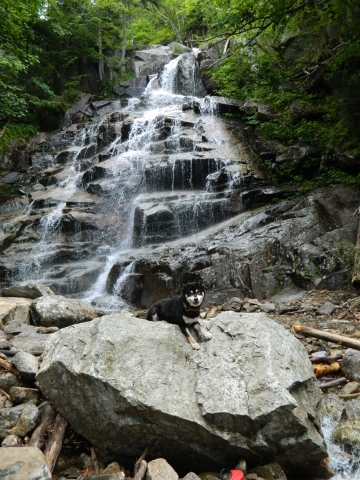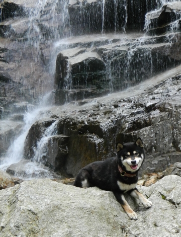 Jamie, posed in front of a waterfall.