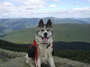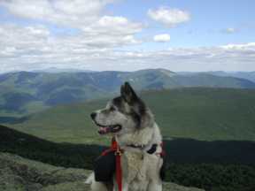 Loupe (age 8) on the Franconia ridgeline between Mt Lincoln and Mt Lafayette. At his age, Loupe doesn't carry a pack for any great distance, but carrying this one (which is very very light) makes him feel important and young again.
