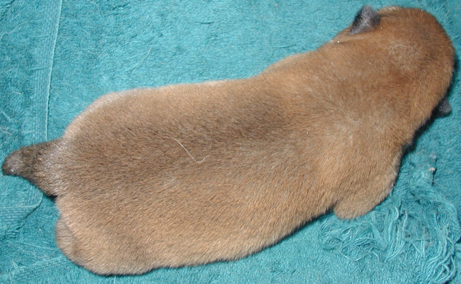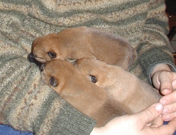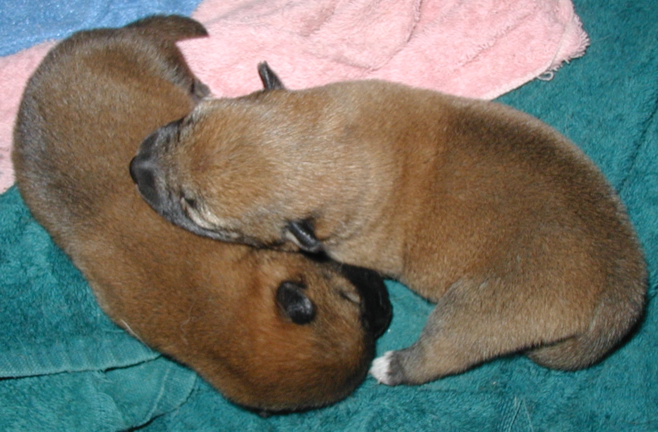 A few days old. Left: M resting her head on Q. Right: Miss Moneypenny