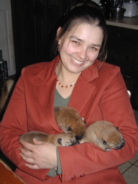 1.5 weeks old, with Auntie Sarah. (from left to right, M, Q, and Miss Moneypenny)
