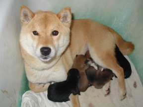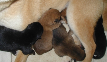 Meg and pups - one day old!
