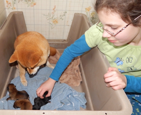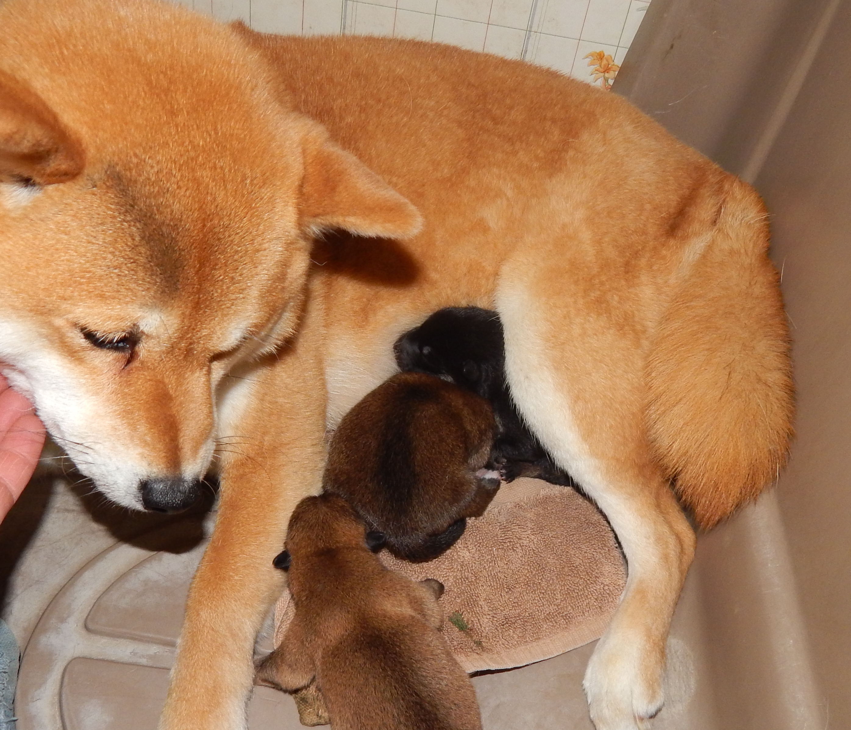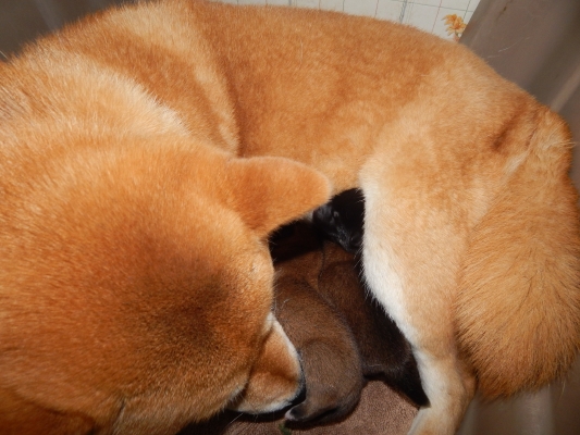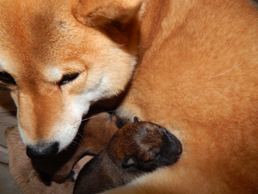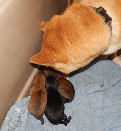 The first day. This litter is kind of fun in that the pups are easy to tell apart - Han is the darkest in color and Luke is the lightest.