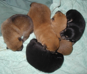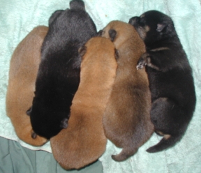 These (first four shots) are the first pictures from my new camera - so far, I'm pretty happy with it! Pups are 9 days old.