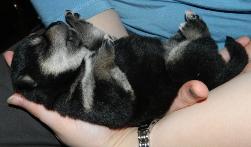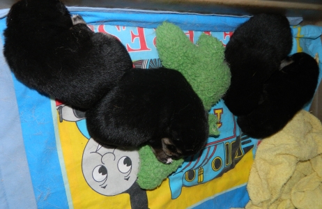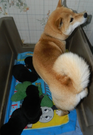 Meg and pups. Although they still cannot see well, all the babies' eyes opened up on Sunday and Monday of this week.