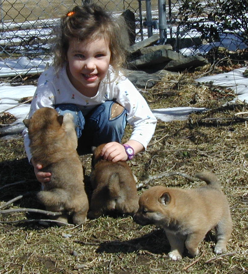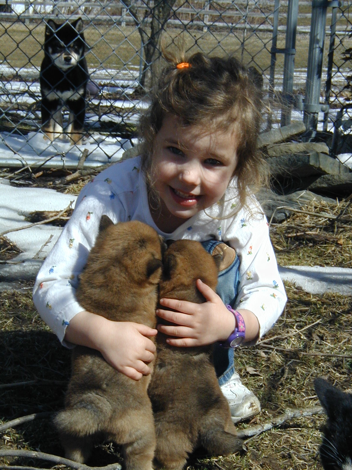 Norah and the pups! In the left photo, Moneypenny is jumping up, Q is being petted, and M is trotting back towards the camera. In the right photo, Miss Moneypenny and Q are getting a hug while Jamie watches from the back yard (and the black ear in the left foreground is Shadow, one of our kitties, who enjoys visiting with pups).