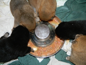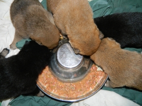 On Tuesday, at three weeks and one day old, the puppies got to try their first real food...