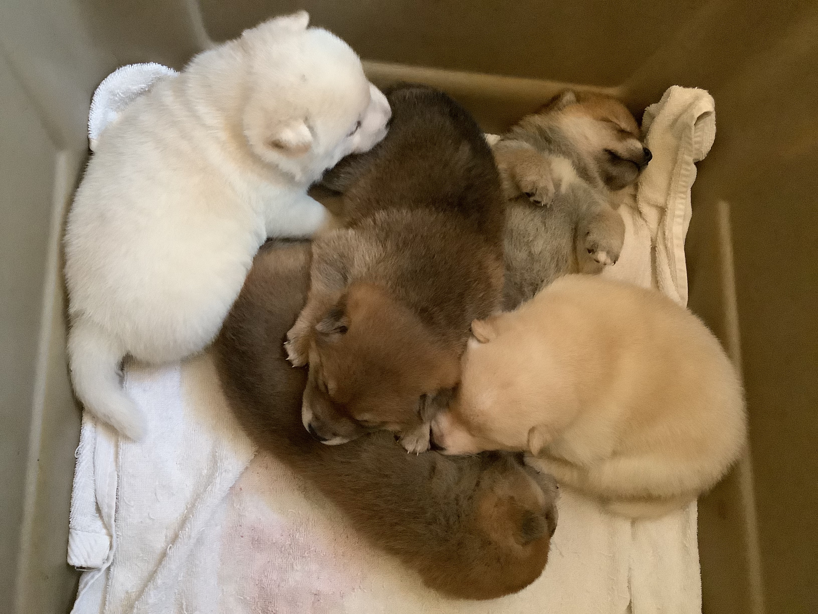 One of their first times outside. Tired out puppies.