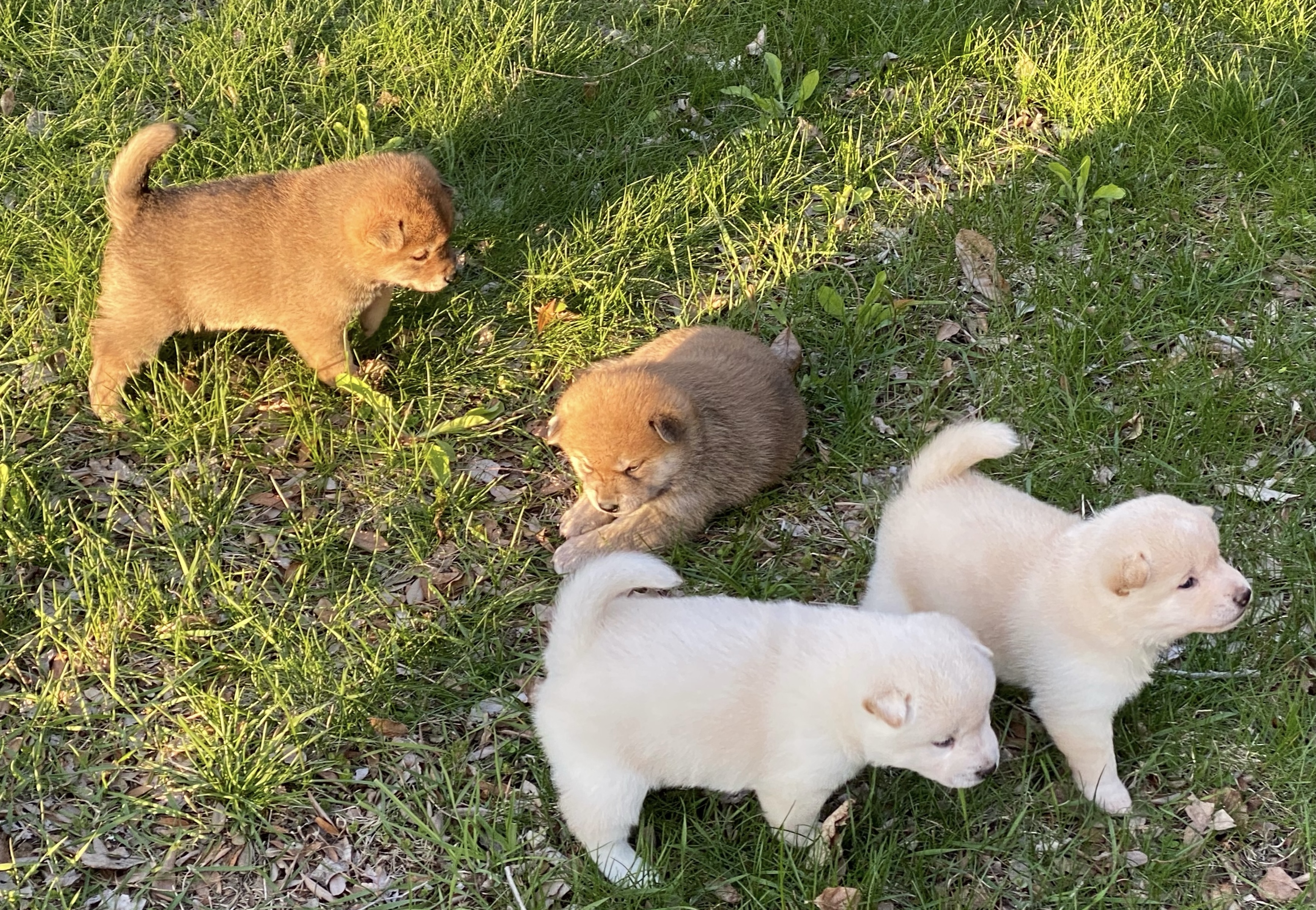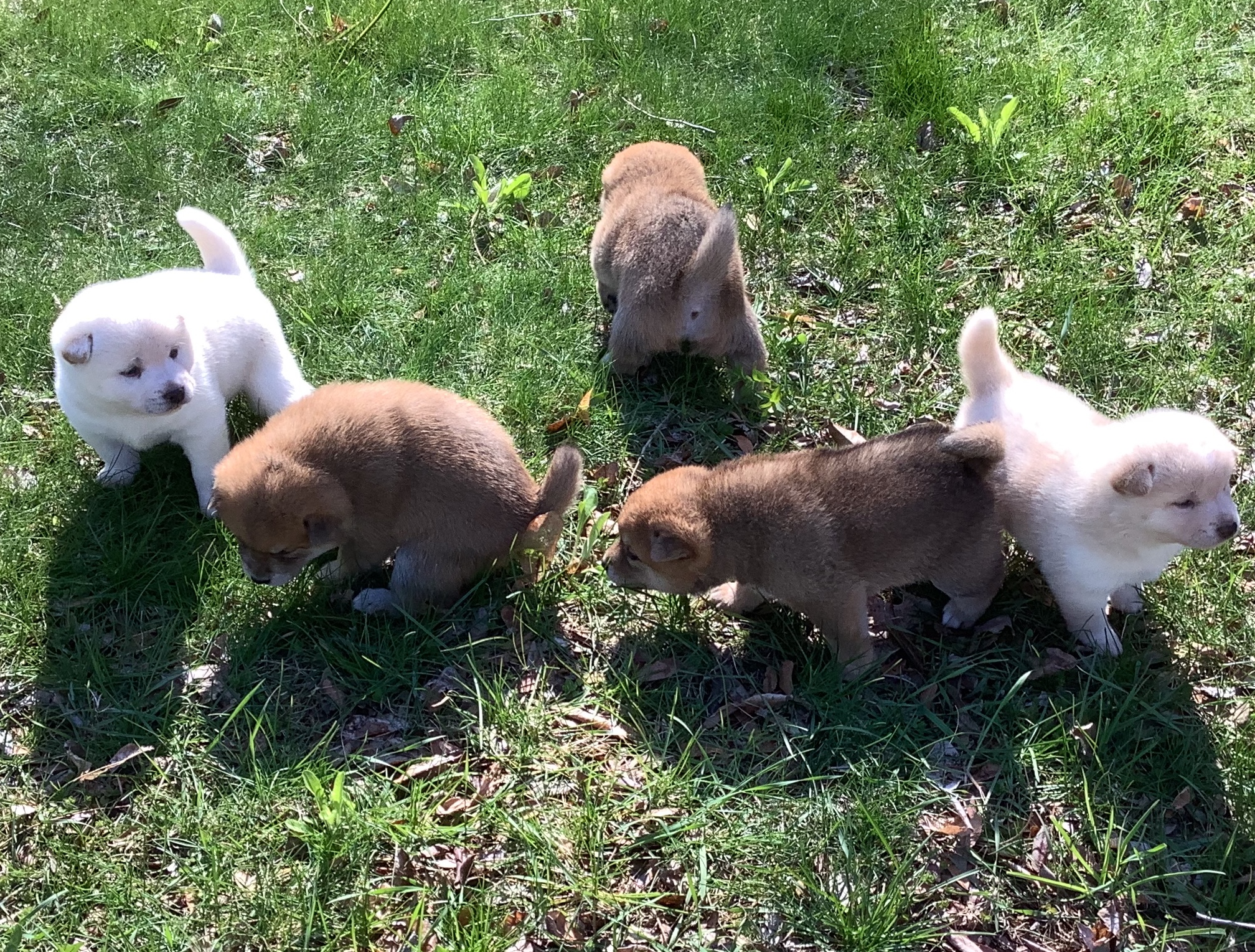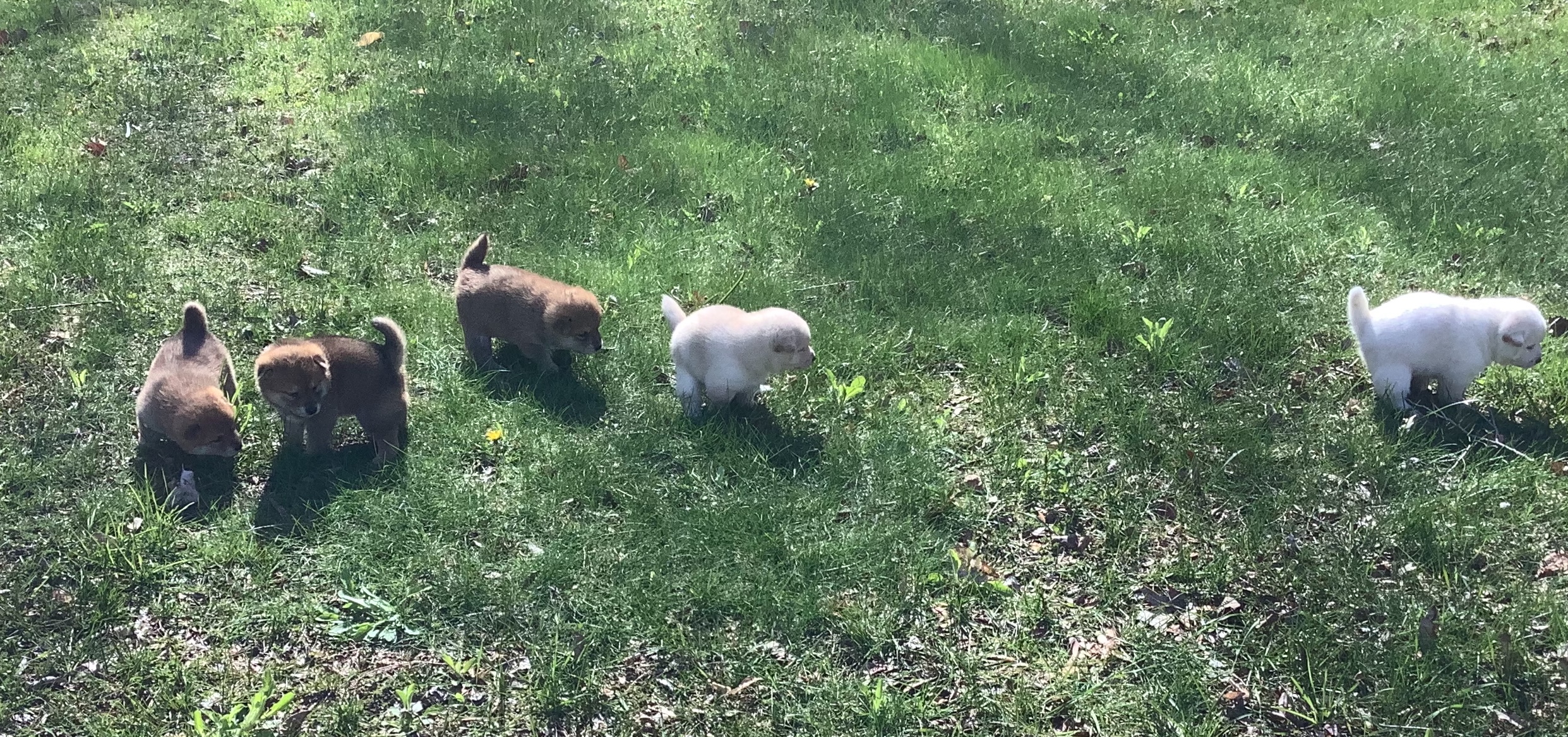 Very good puppies, all learning how to potty outside.