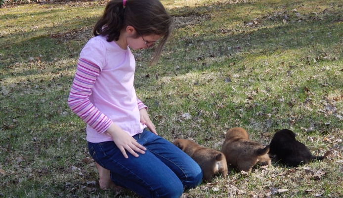 This was an important week for the pups developementally as they went from being "babies" to being "real dogs" in a 48 hour period! Keep in mind, the first photos are the most recent.