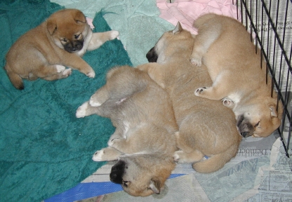 Sleeping pups - from left to right: Allie, Kodi, Denali, and Eli.