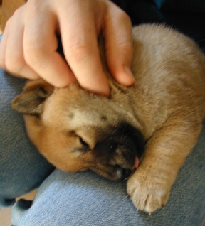 Allie napping on Auntie Sarah (left) and Denali enjoying a good scratch (right).