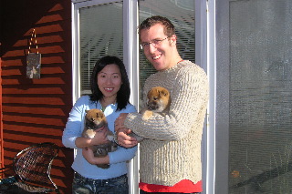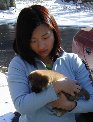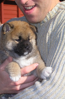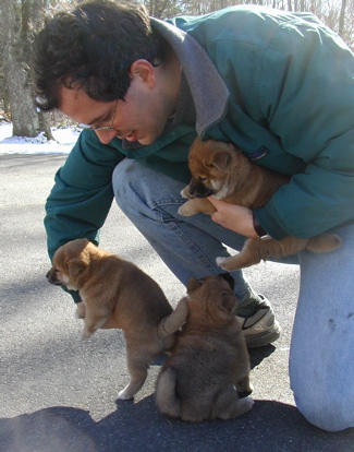 Mark collecting pups to go back inside. They're getting to be quite an armload!