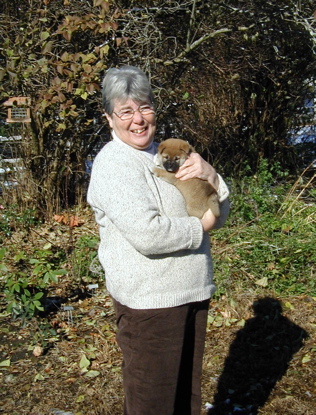 Sue, Mark's Mom and soon-to-be puppy-mom, holding Allie.