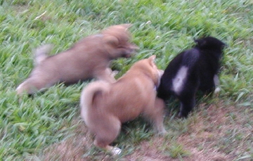 Pups at play earlier in the week. Mal (left), Kaylee (center) and River (right).