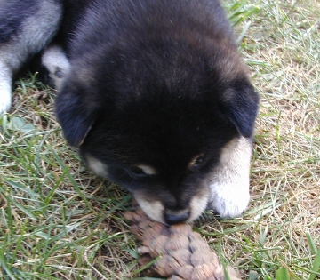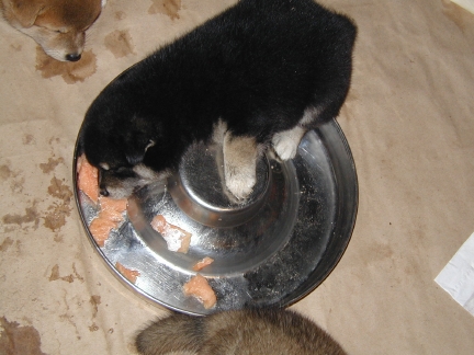 The babies had salmon for supper for the first time. They all were extremely enthusiastic. River acted like she'd died and gone to heaven (she was a stinky pup the next day!).